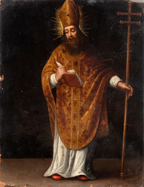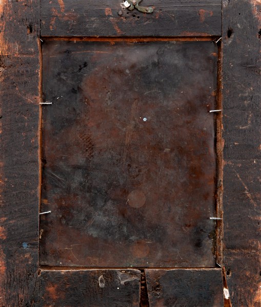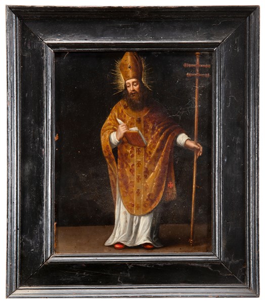 Scuola del secolo XVII "Vescovo" olio su rame (cm 22,5x17) in cornice antica i