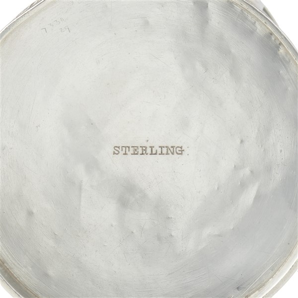 Mug in argento a corpo liscio con profilo di gentiluomo in rilievo entro ovale con cornice d'alloro. Marcato Sterling (h. cm 10) (g 180) (lievi difetti)