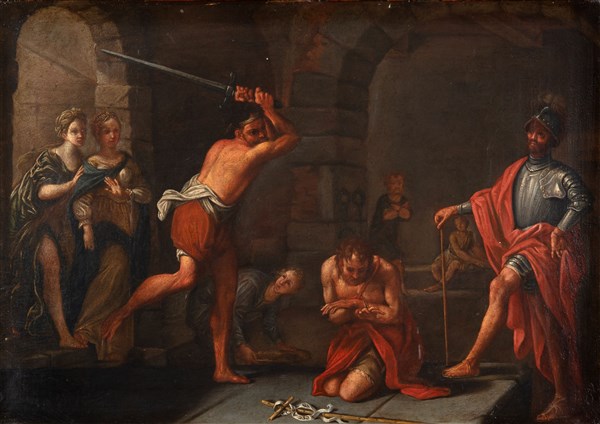 Scuola del secolo XVII "La decollazione del Battista" olio su rame (cm 30,5x42