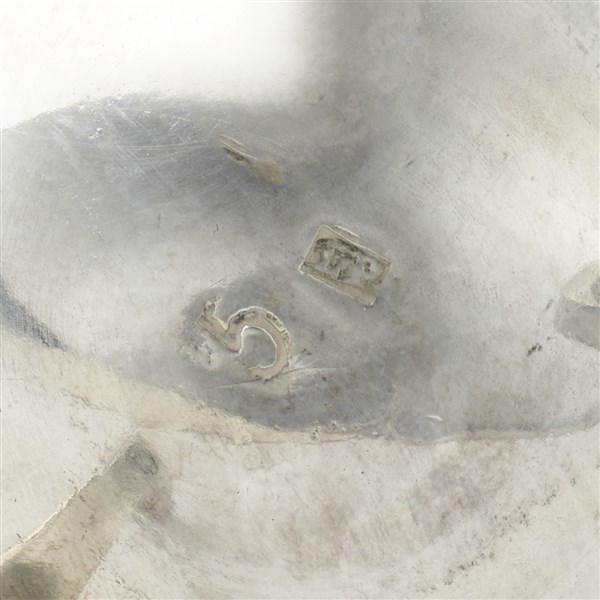 Caffettiera solitaire in argento con corpo ovoidale e sostegno tripode con atta