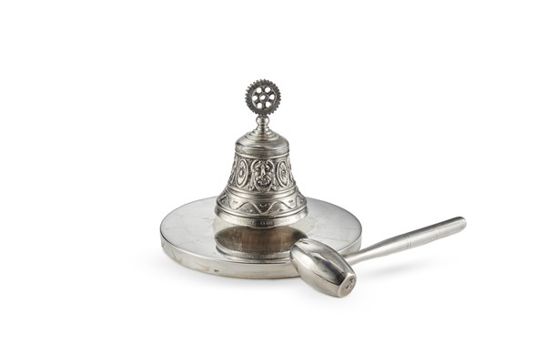 Rotary International prize bell with signatures and dates of the Roma Sud club. Title 800 (g gross 1100) (defects)