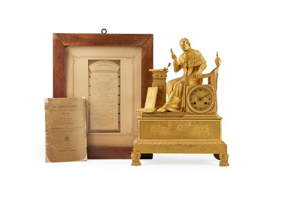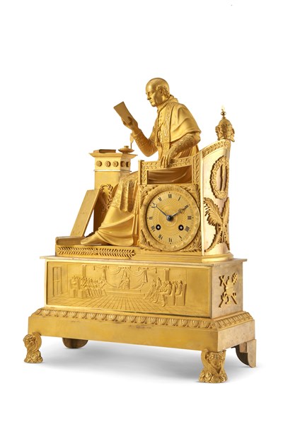 According to its last owners, the clock represents the celebration of a historic moment in the pontificate of Pope Pius VII, namely the stages of the July 1801 Concordat. This Concordat was intended to reconcile France and the Holy See after the death of Pope Pius VI.