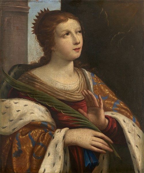 Scuola emiliana dell'inizio del secolo XVII "Santa Barbara" olio su tela (cm 5