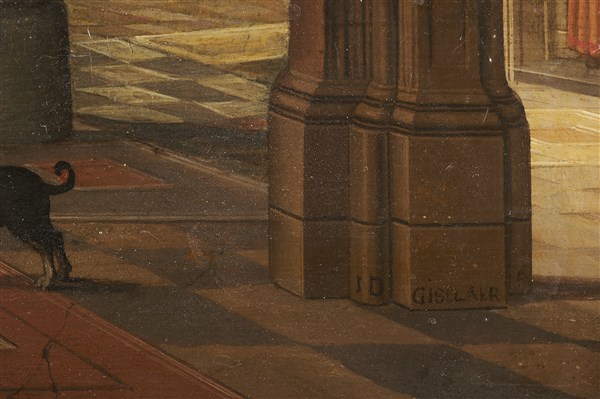 firmato al recto sulla colonna in basso a destra "Gislaer"