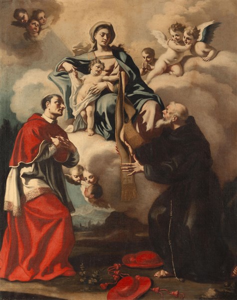 Lot 670 | Ambito di Francesco Solimena "Madonna con Bambino e Santi" olio su tela (cm 12