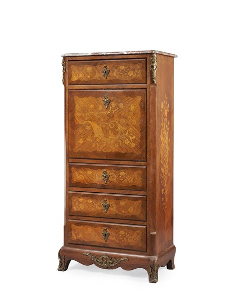 Secretaire lastronato in palissandro decorato a medaglioni intarsiati a motivi