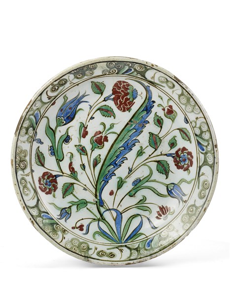 Turchia Ottomana, Iznik, secolo XVI - XVII. Piatto in ceramica invetriata, cave