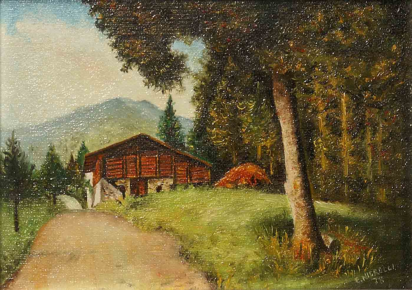 E. Nigrelli, (XX secolo), "Paesaggio", olio su cartoncino telato, cm. 13x18, firmato e datato 78 in basso a destra.