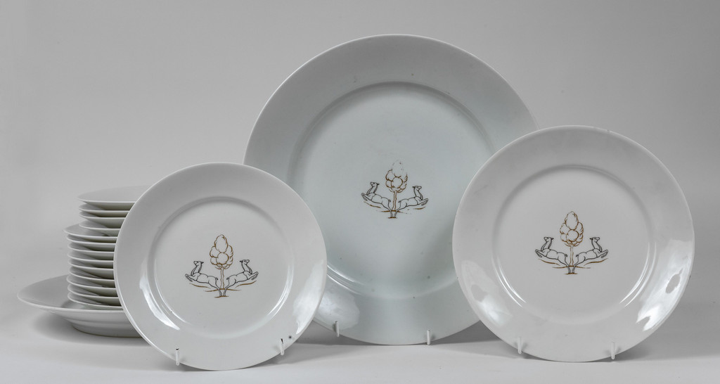 Un servizio composto da cinque piatti da frutta dieci piani e due da portata.