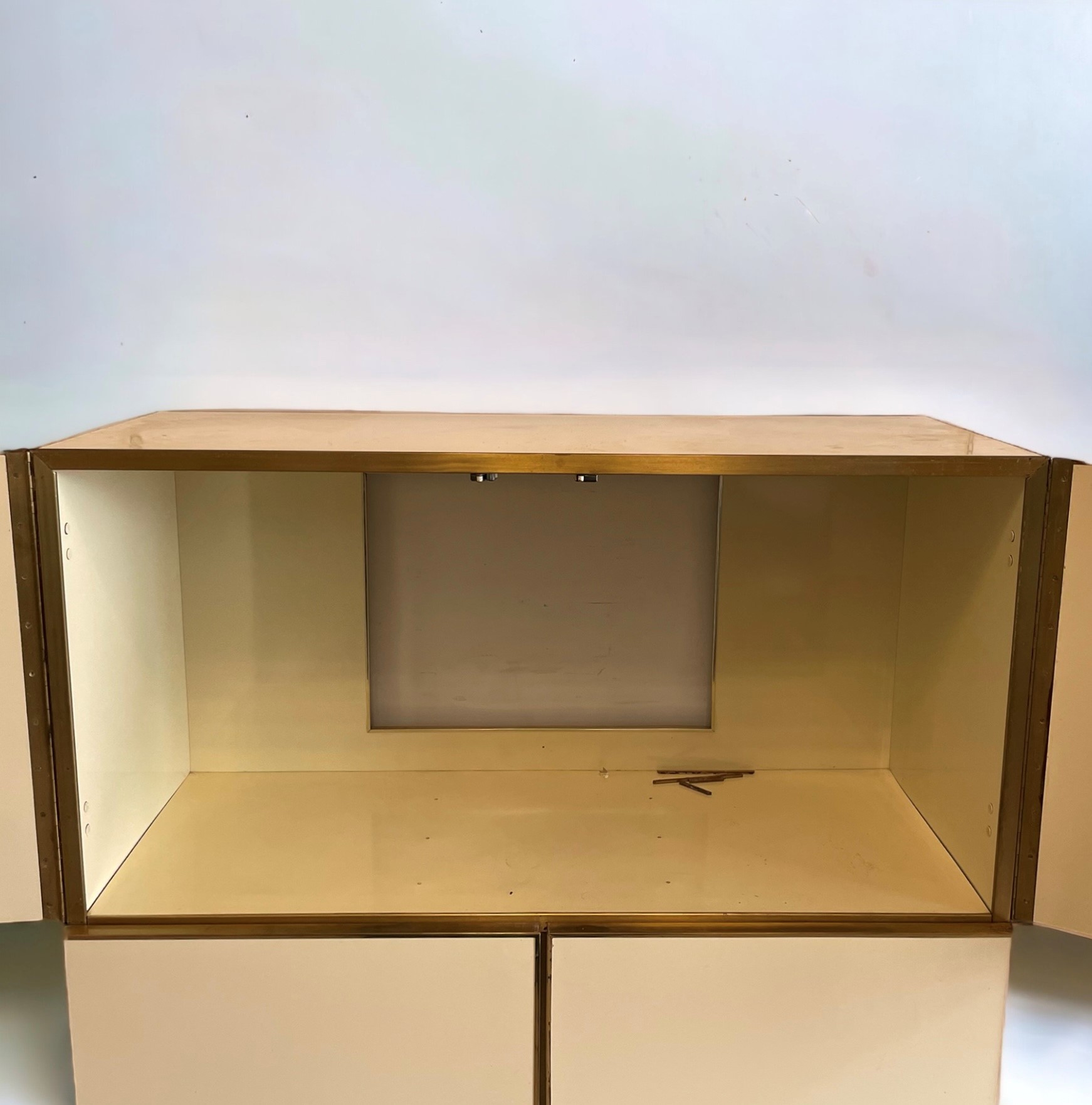 140 x 50 x 120 cm. A 4 ante a pressione. In legno laccato e ottone. Qualche difetto.