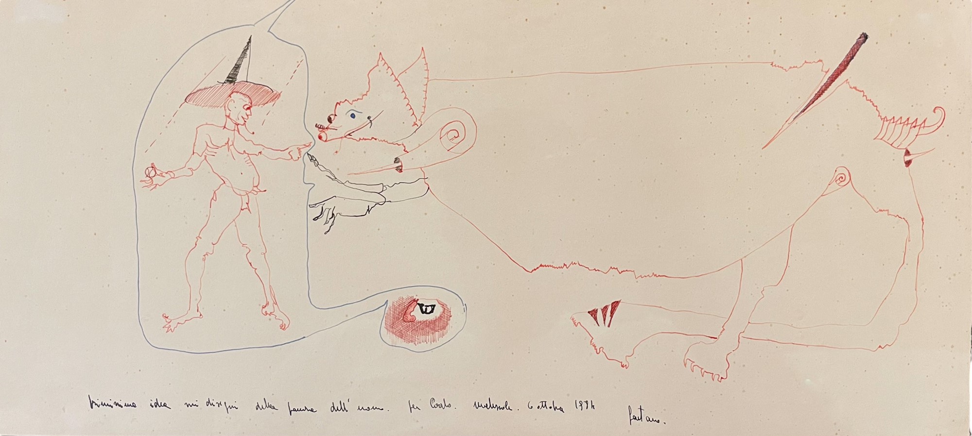 'Primissima idea sui disegni della paura dell'uomo per Carlo Melezzole6 ottobre 1984 gaetano'.