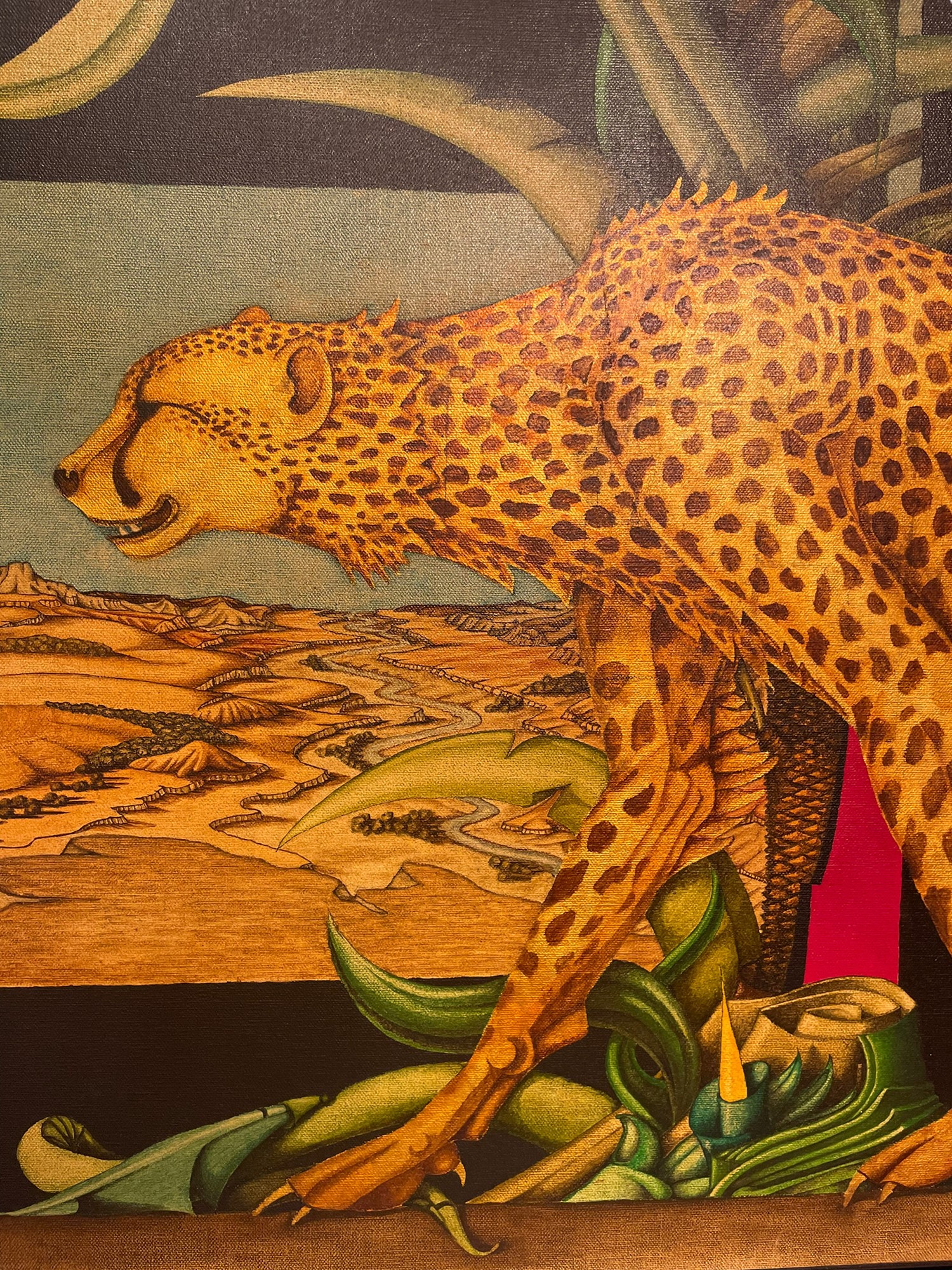 Adriano e Gaetano Pompa (XX sec. - XX sec.) Ghepardo D'oro 1986 olio su tela...