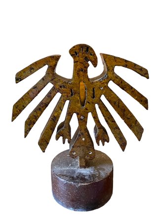 Enzo Pazzagli (1933 - ) Aquila acciaio 27 x 29 cm. Dimensioni base circolare:...