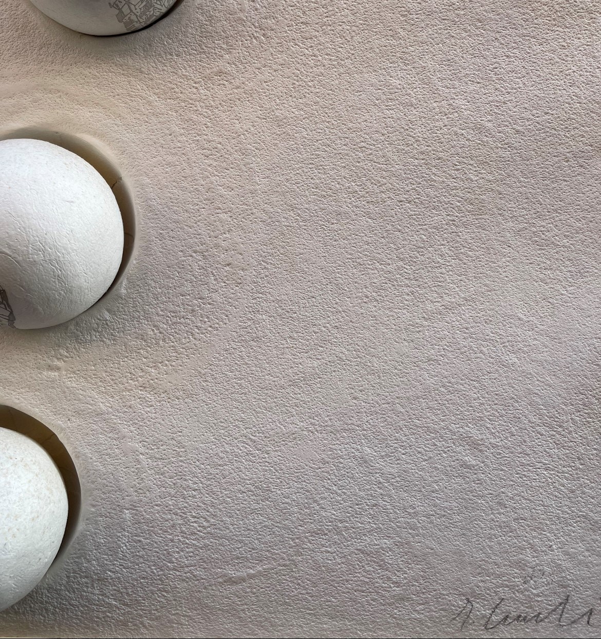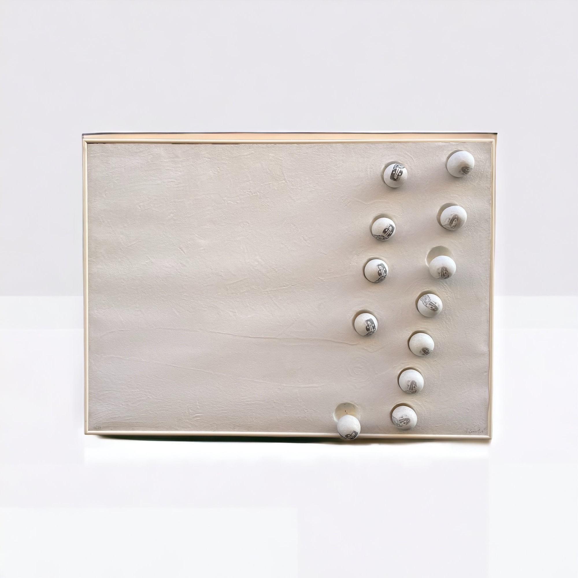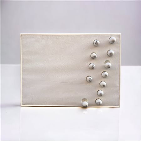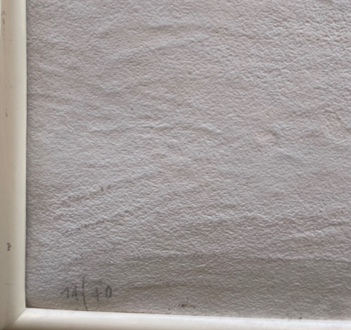 In due colori su carta fabriano con applicazione di dodici bolle di carta. Esemplare 14/40. Firmato e numerato a matita dall'artista. L'opera è presentata con certificato d'autenticità della galleria La Spirale di Milano.