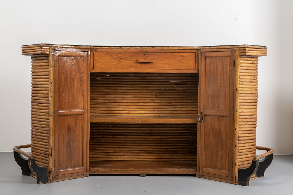 Mobile bar: bambu' legno laccato vetro opalino nero legno impiallacciato in ciliegio;