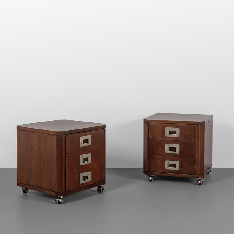 A pair of night tables on wheels from the 'Parisi 1' series.