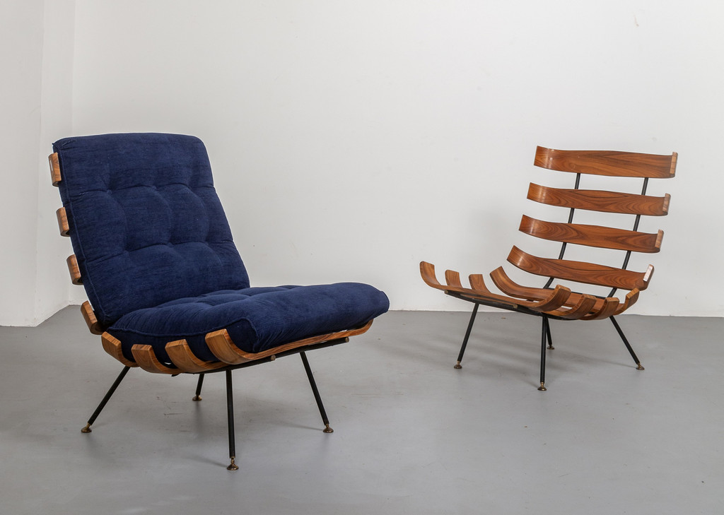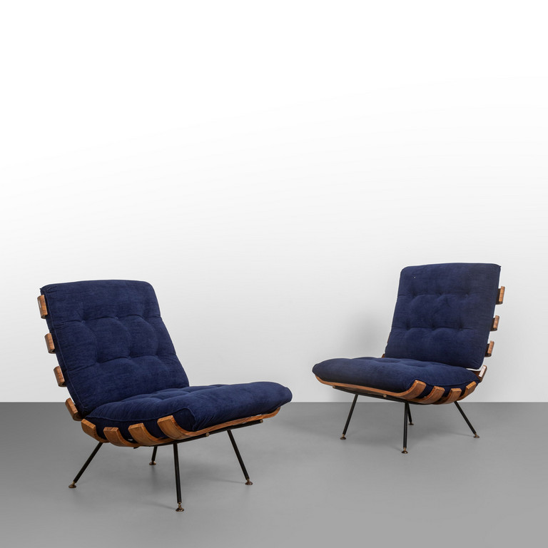 Ferro verniciato compensato curvato impiallacciato in palissandro imbottiture rivestite in tessuto.