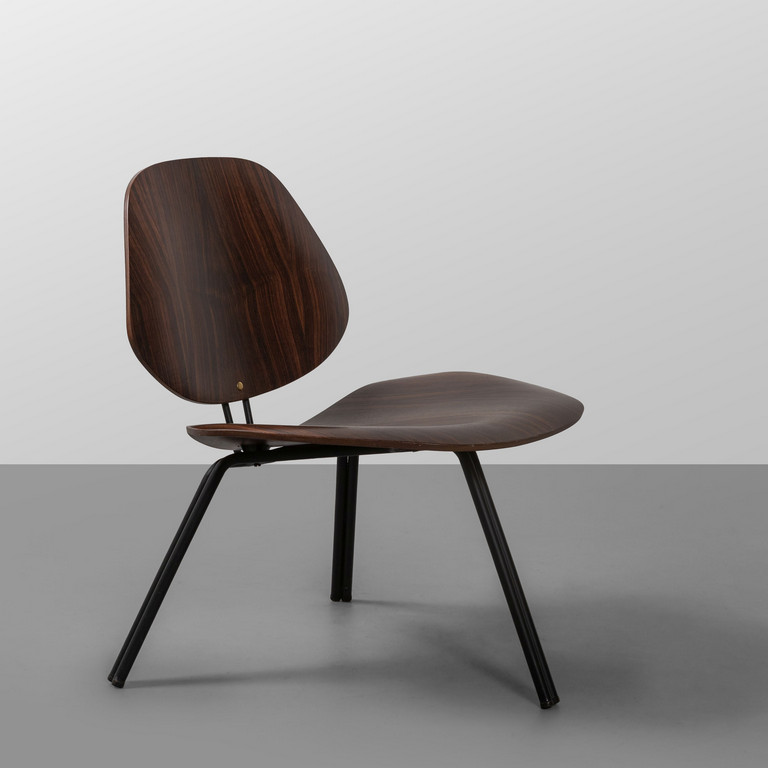Varnished steel and teak veneered plywood.