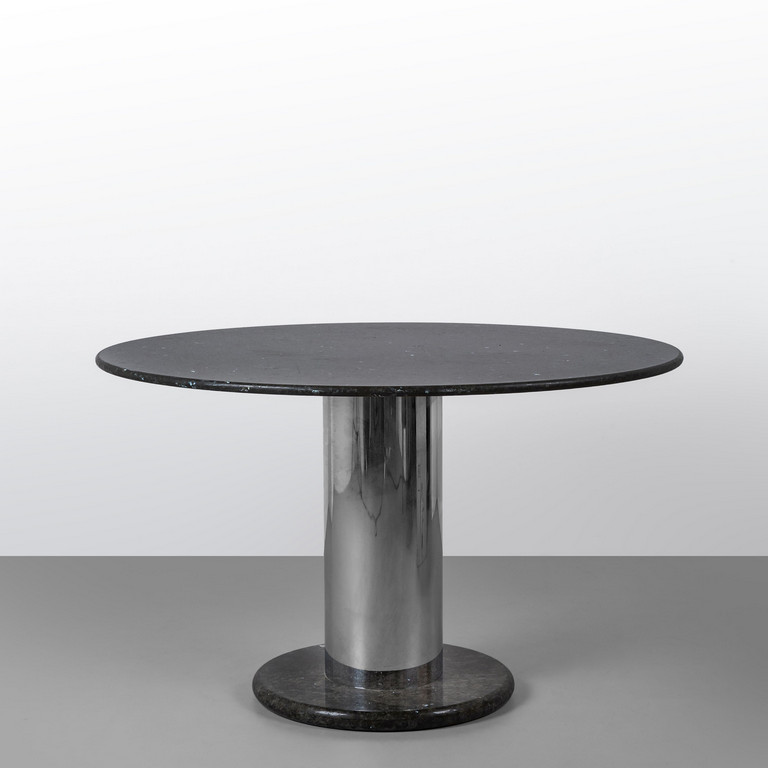 Base e piano in marmo fusto di acciaio cromato.