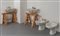 Un set di apparecchi sanitari modello 'Conchiglia' composto da due lavabi water e bidet e rubinettria.