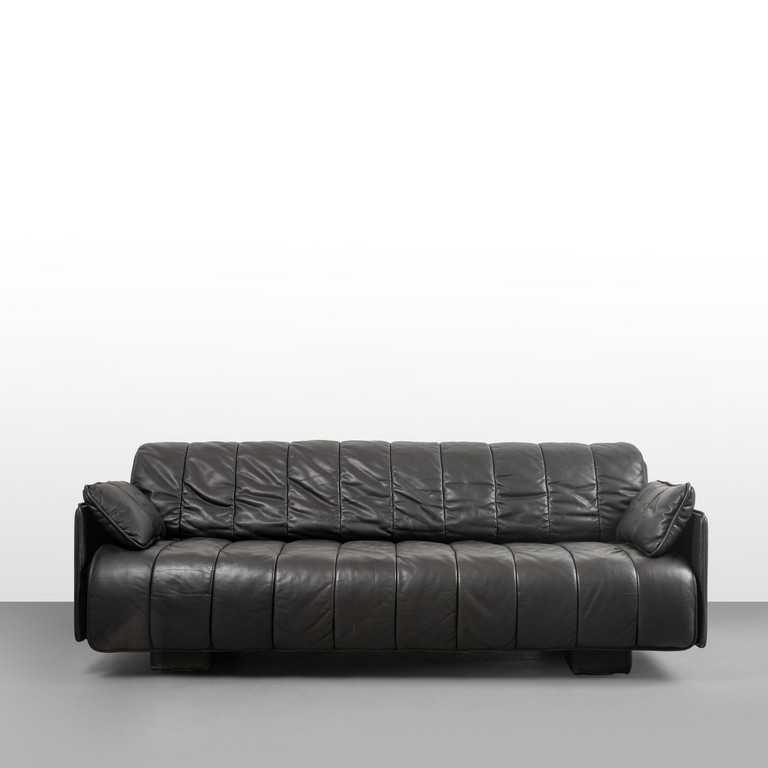 Struttura in legno e acciaio imbottitura rivestita in pelle.