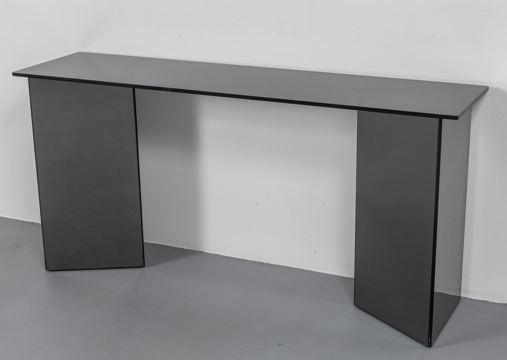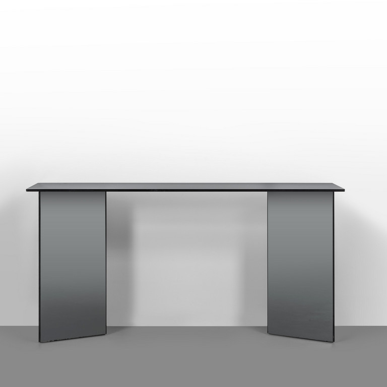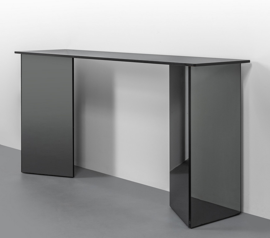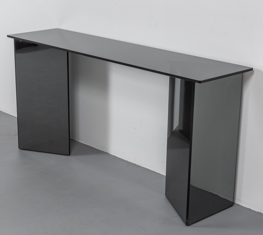 Piano in cristallo colorato parzialmente argentato basi in cristallo colorato argentato.