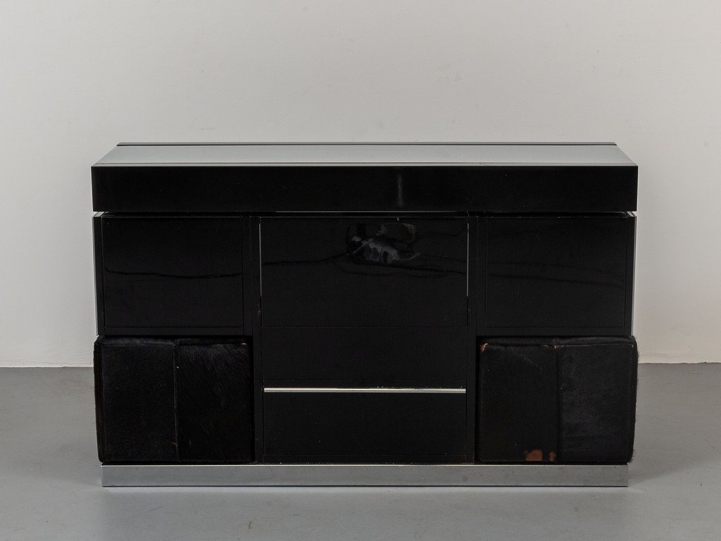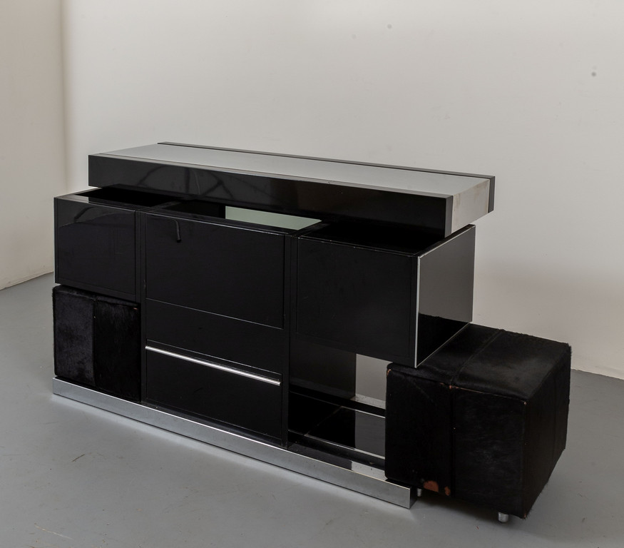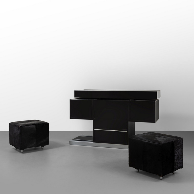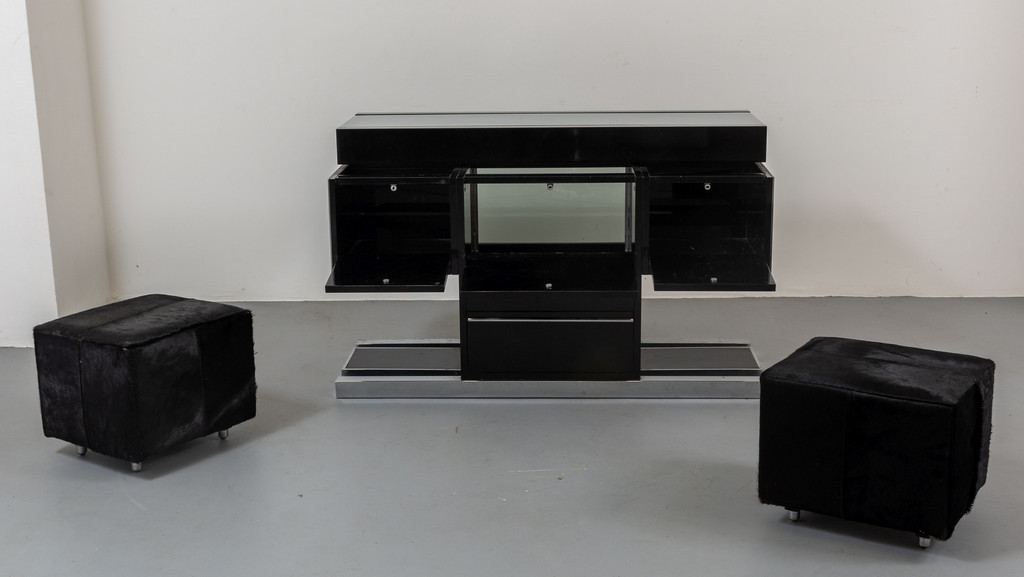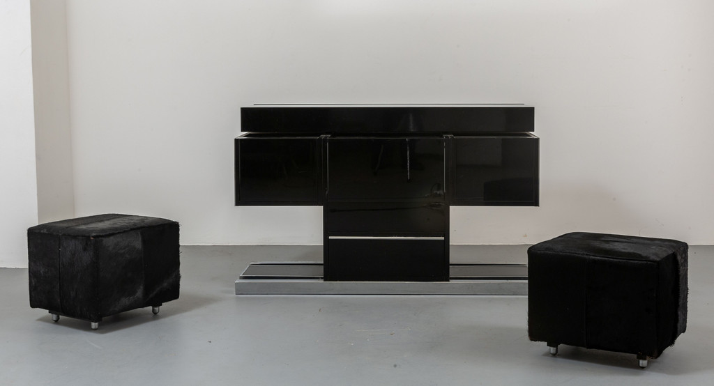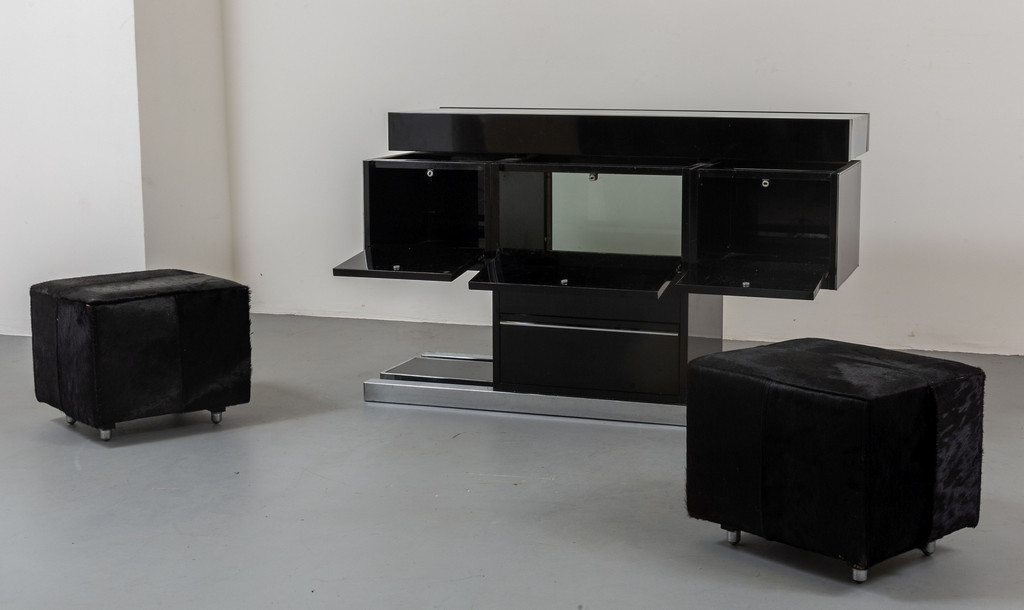 poufs con strutture di legno ed imbottiture rivestite in cavallino.