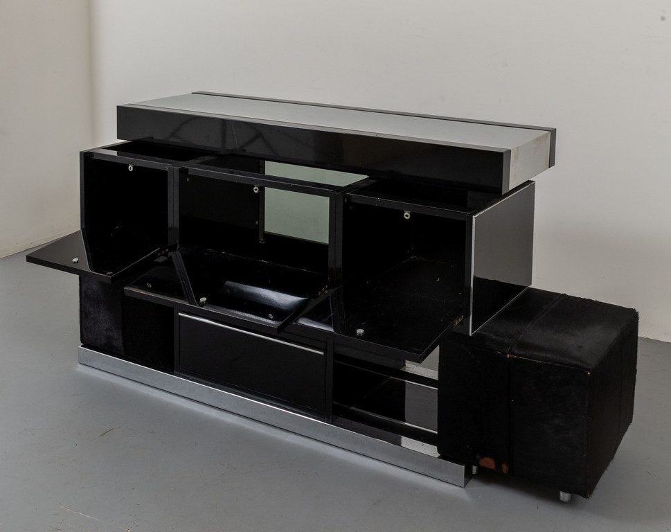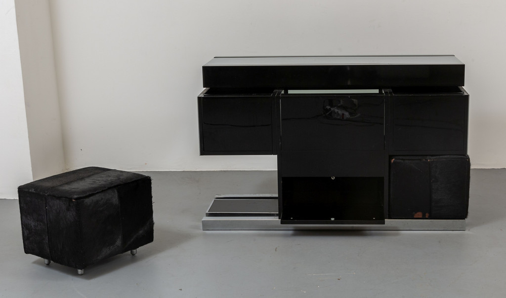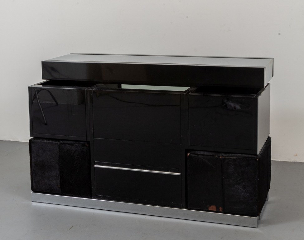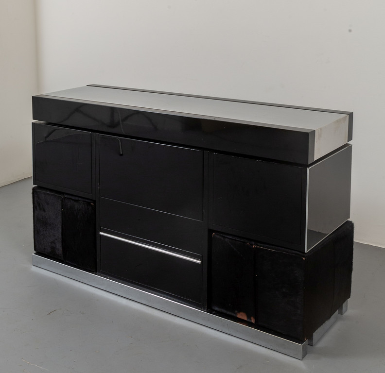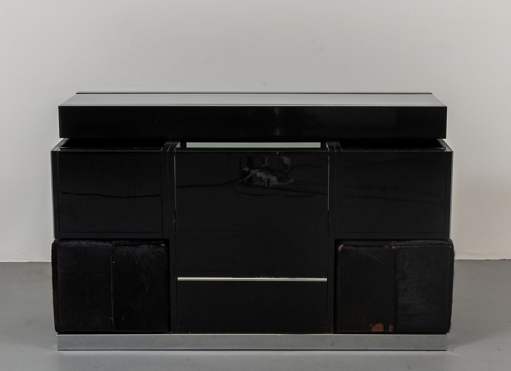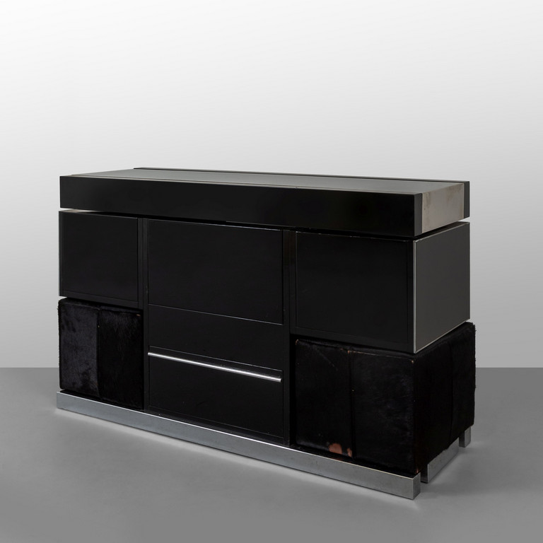 poufs con strutture di legno ed imbottiture rivestite in cavallino.