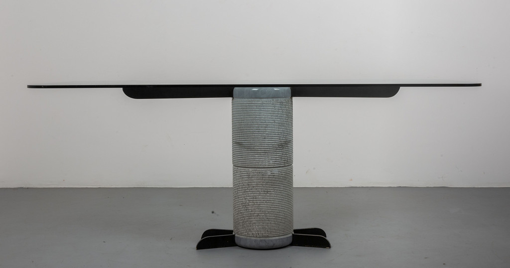 Marmo tornito e scalpellato metallo verniciato cristallo.