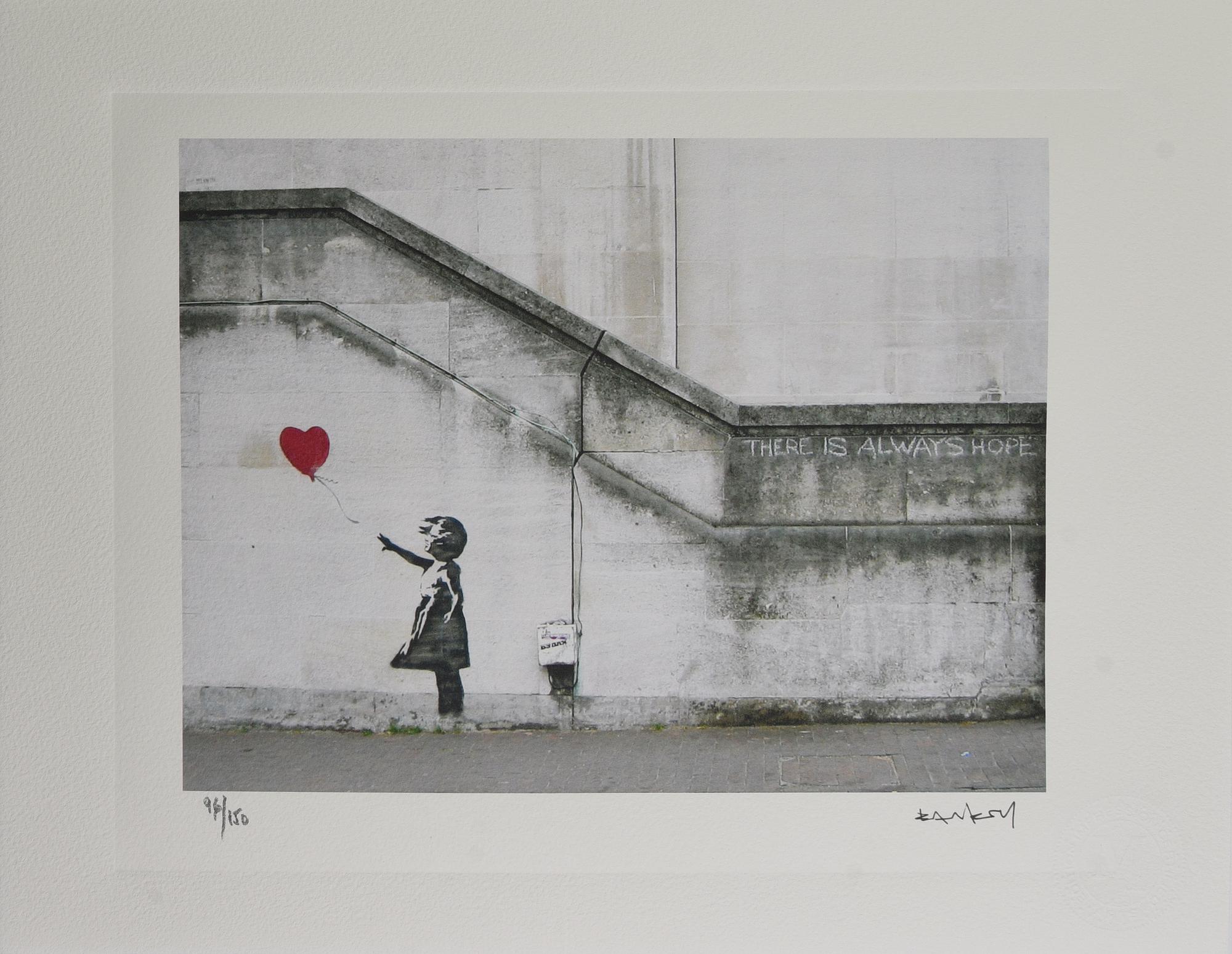 Da Banksy GIRL WITH RED BALLOON (2014) eliografia su carta, cm 28,5x38,5; es....