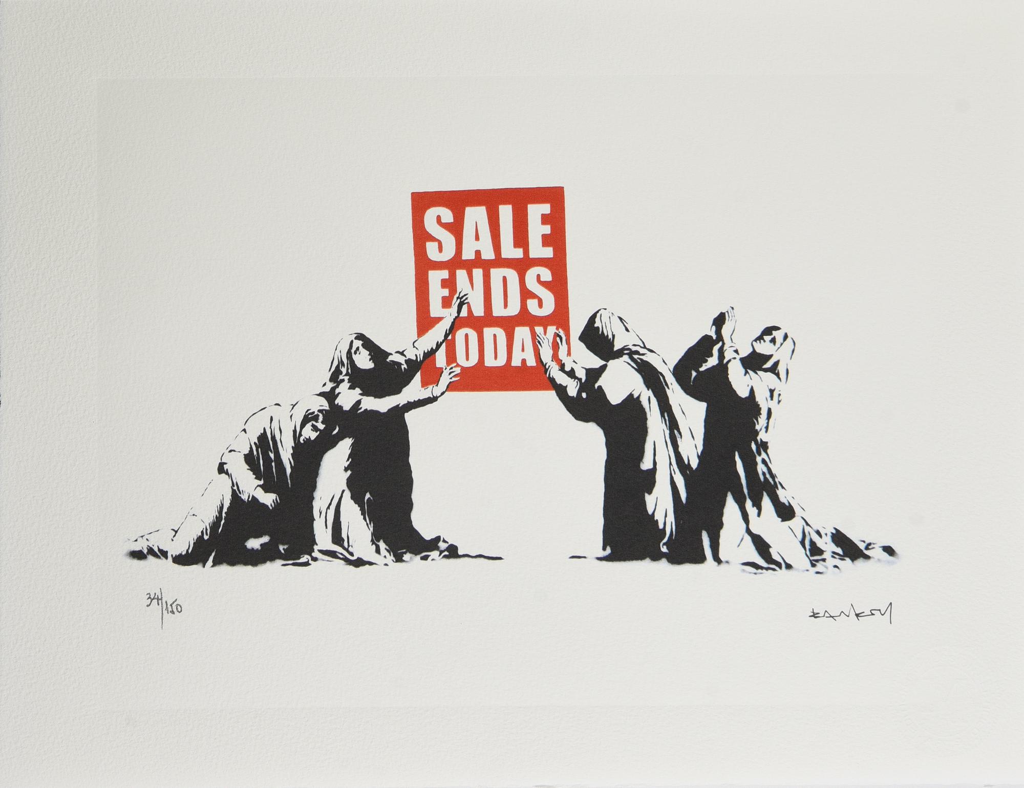 Da Banksy SALE ENDS TODAY eliografia su carta, cm 28,5x38,5; es. 34/150 firma...