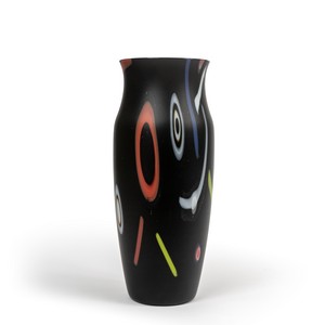 Un vaso serie 'Mirò' nero con decoro di murrine e canne vitree colorate sparse