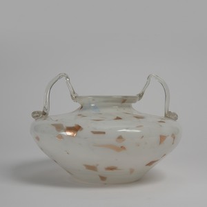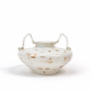 Un vaso biansato a macchie di vetro lattimo e avventurina