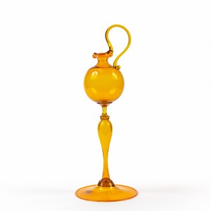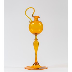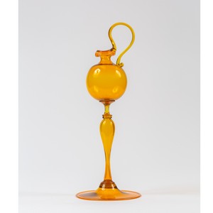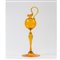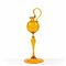 Un vaso ad ampolla in vetro trasparente arancio su alto piede.