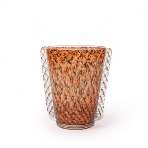 Un vaso a graniglie colorate e bolle regolari con morise in cristallo