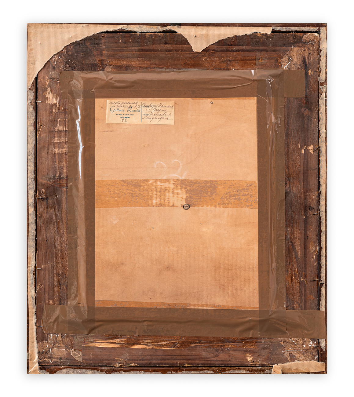 Etichetta della Galleria Ranzini (MI) con caratteristiche tecniche dell'opera al retro