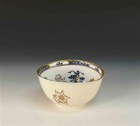 Bowl in porcellana dipinta a policromia e parzialmente dorata e decorata a...