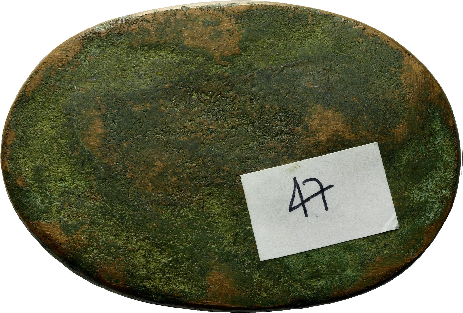 Ae fuso ovale; mm 57,4 x 38,5; gr 40,6. Patina verde artificiale.