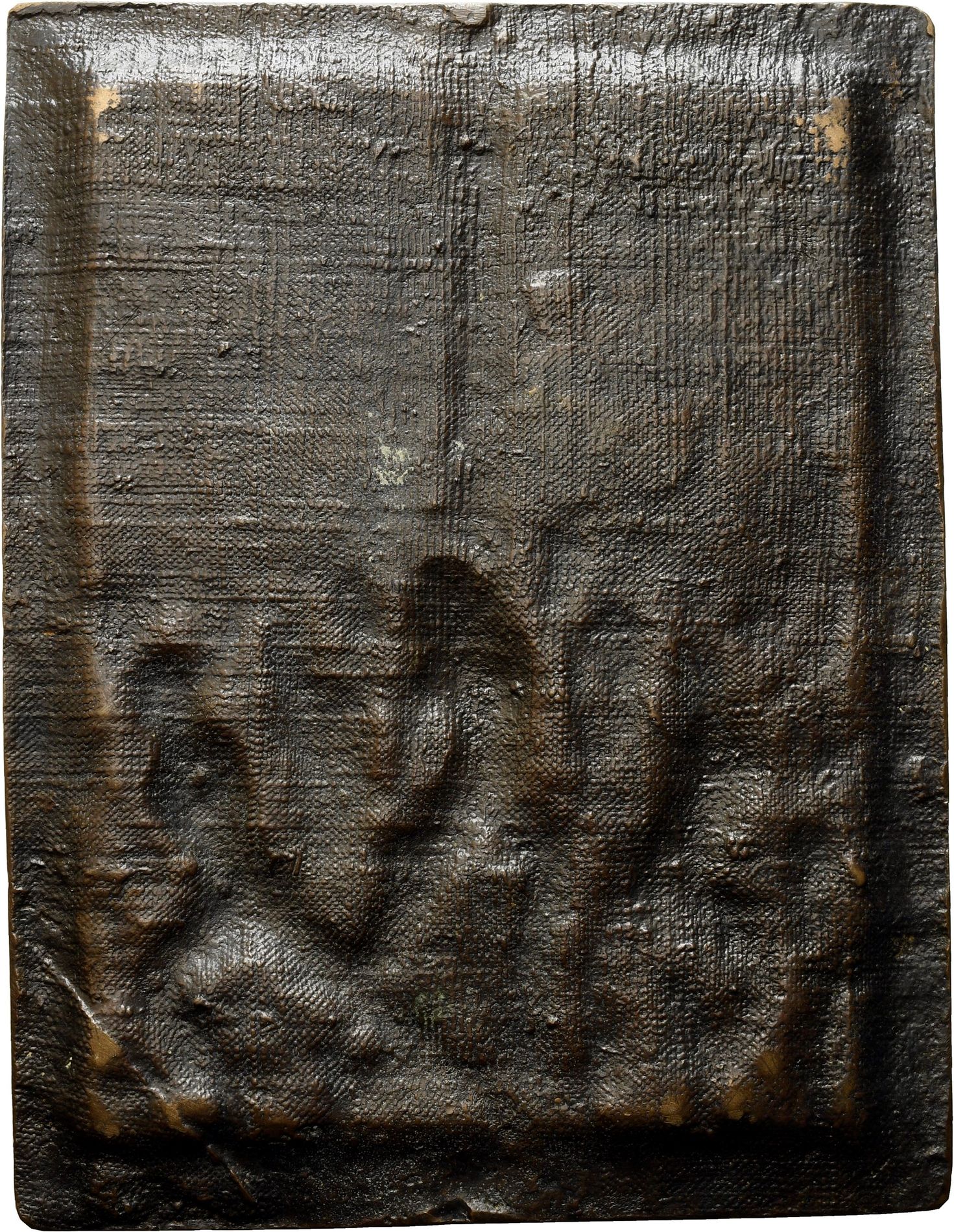 Bronzo fuso rettangolare; mm 155,2 x 120,9; gr 258,6; patina chiara con residui di antica doratura.