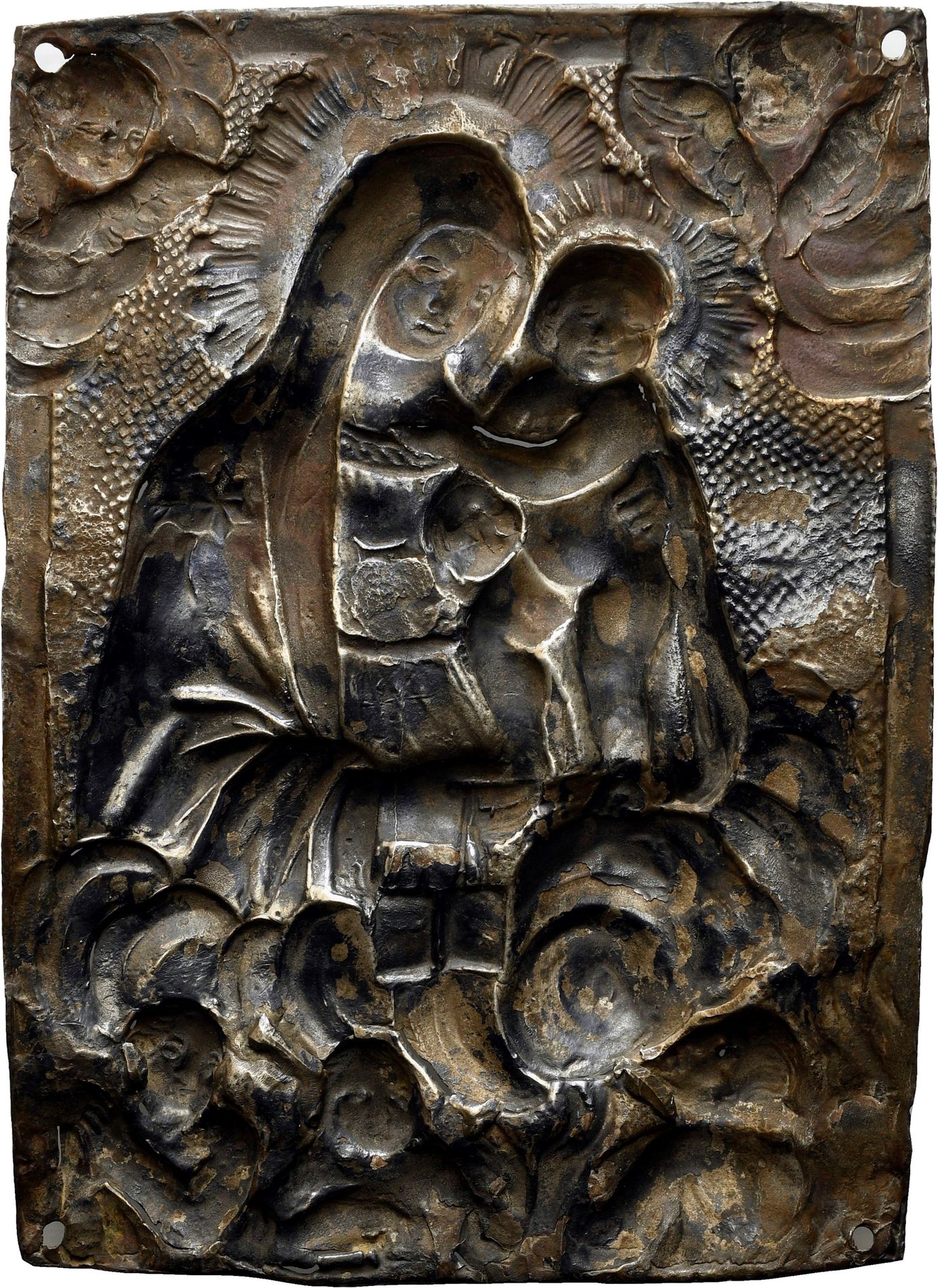 Arg. sbalzato e cesellato, quattro piccoli fori ai lati; mm 131,6 x 111,5; gr. 113,8