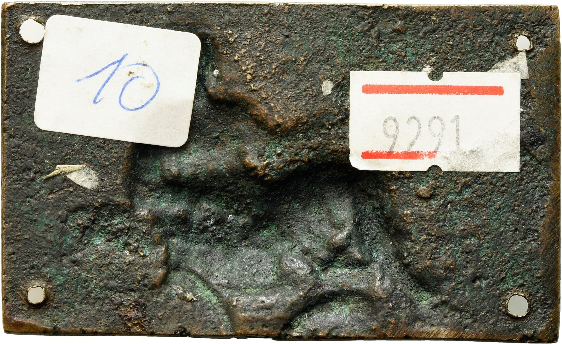 Ae fuso rettangolare; mm 68,4 x 40,8; gr 38,5; patina naturale, quattro fori ai lati
