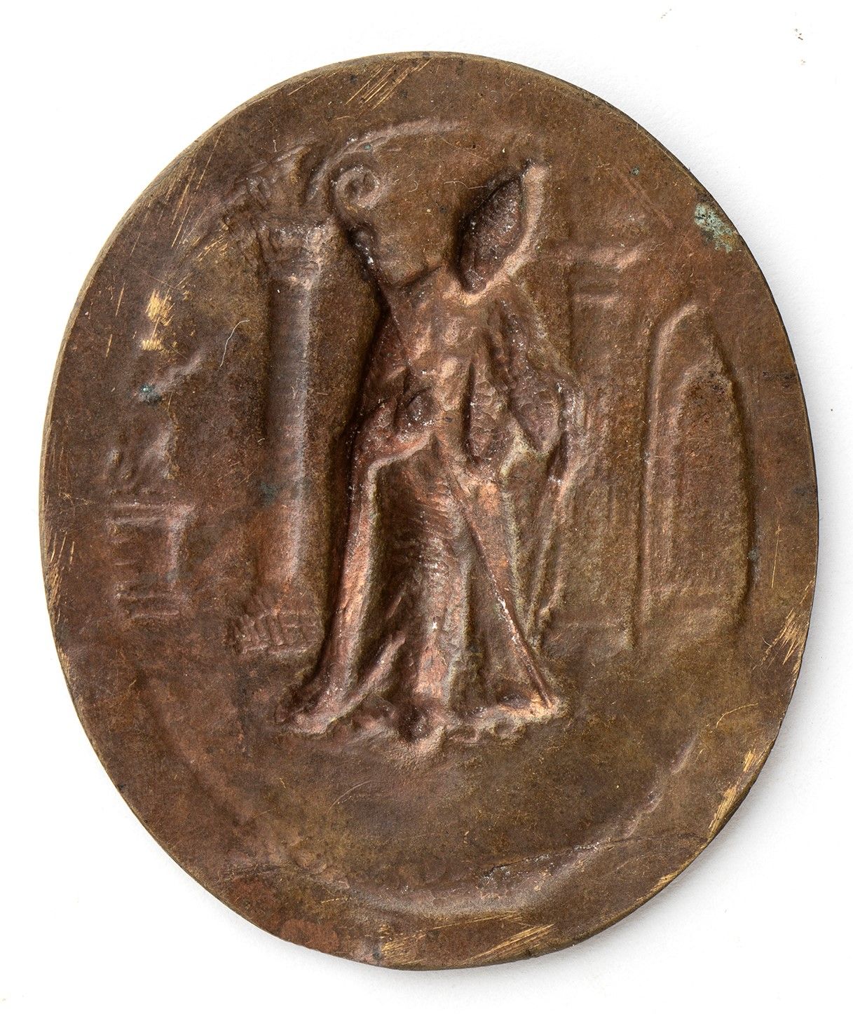 Placchetta ovale, 64,6 x 55 mm. AE fusione. Bella qualità, patina marrone