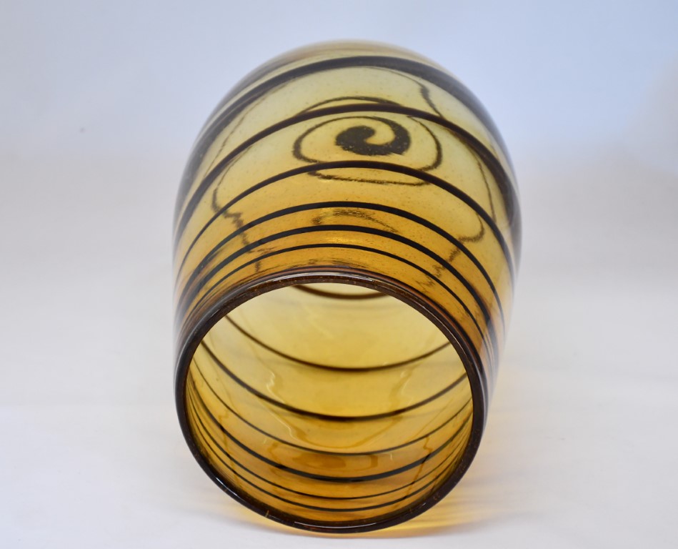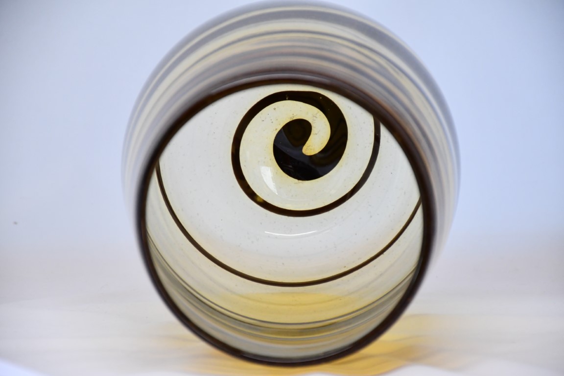 Realizzato nei toni dell'ambra con spirale marrone, corpo cilindrico
