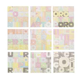 Alighiero Boetti (1940-1994) Nove quadrati acquarello e matita su carta filigranata fatta a mano cm 19x19 (ogni quadrato); cm 57x57 (totale) ogni elemento numerato 16/40 (in alto a sinistra) e firmato alighiero e boetti (in alto a destra) Realizzato nel 1979 in una edizione di 40 esemplari + 5 p.a.+ alcuni esemplari non numerati ed altri siglati H.C. Opera registrata presso l'Archivio Alighiero Boetti, Roma, n. 5912, come da autentica su fotografia in data 8 ottobre 2008 (9) Provenance Collezione privata, Parigi Literature AA.VV., Il disegno italiano, San Polo di Reggio Emilia 1992, p. 85 (altro esemplare illustrato) J.C. Amman, Alighiero Boetti, Milano 2012, vol. II, p. 364, n. 1160 (altro esemplare illustrato)