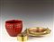 Lotto composto da un cachepot in ceramica smaltata e da un sottovaso in rame e metallo dorato, misure diverse.