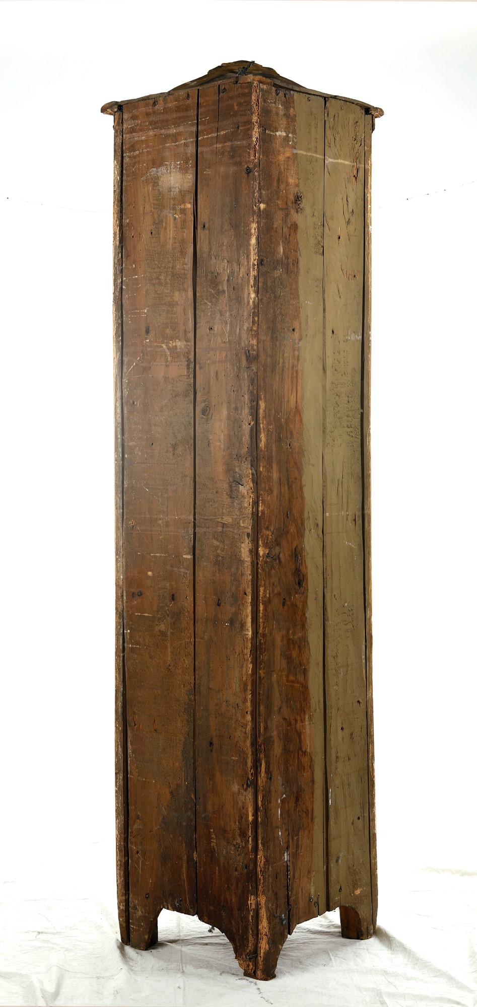 Angoliera in legno laccato, Piemonte, XVIII secolo facciata convessa a due ante con pannelli decorati a motivi floreali entro riquadri a volute; cimasa arcuata, piedi a mensola