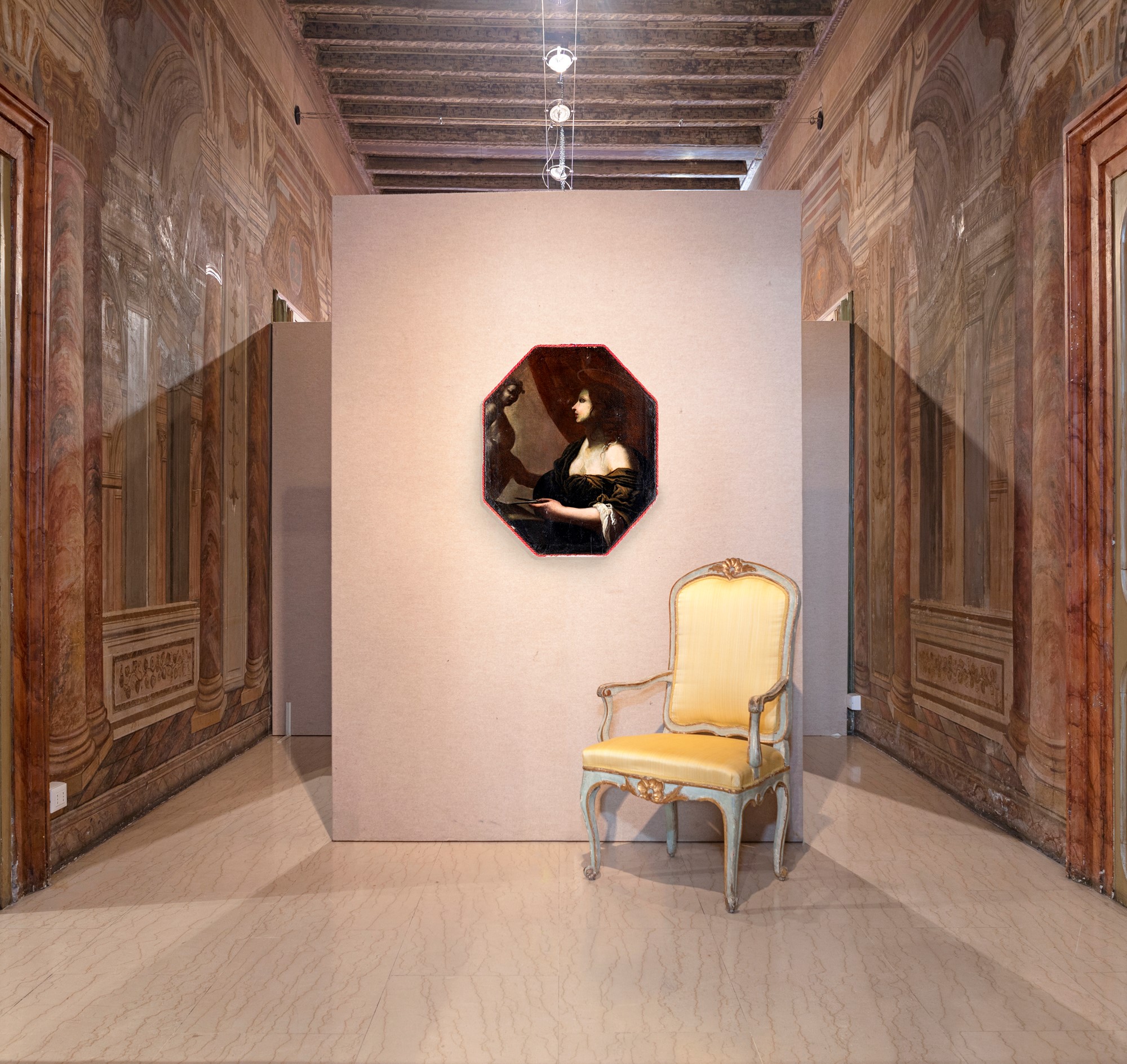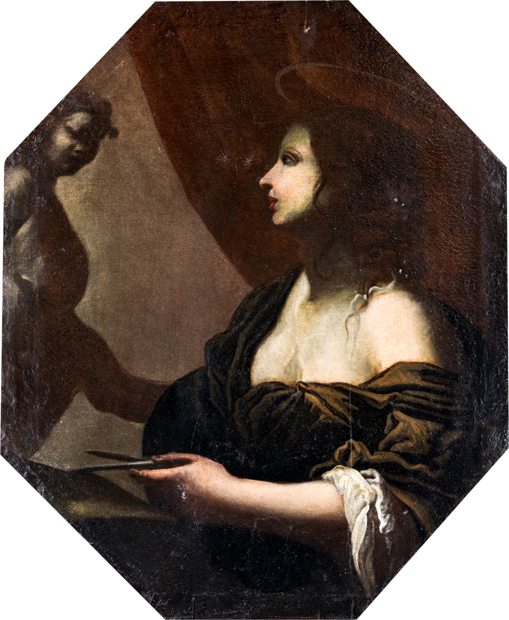 Simone Pignoni (Attribuito a) Firenze 1611-Firenze 1698 Allegoria delle arti olio su tela ottagonale cm 86,5x70,5