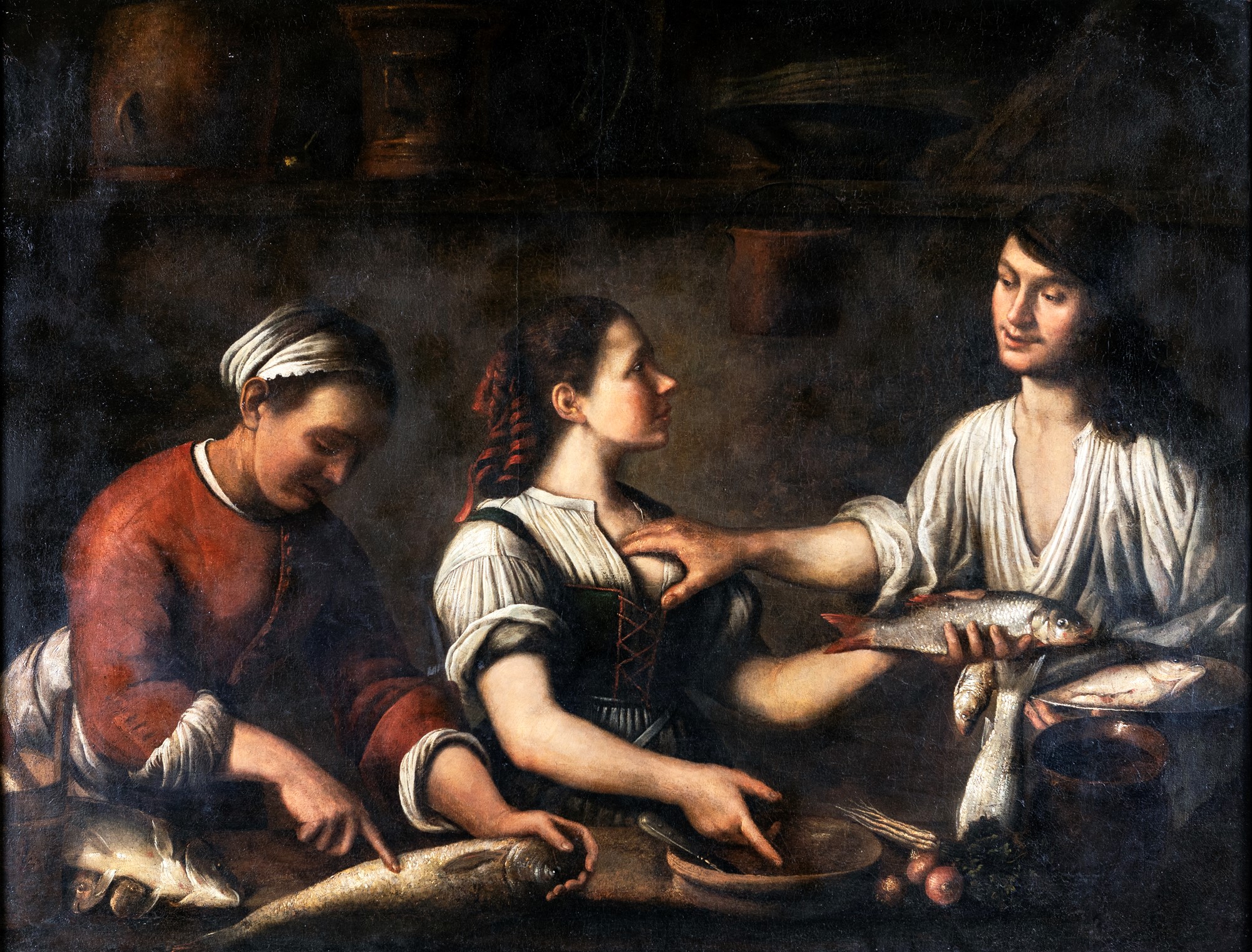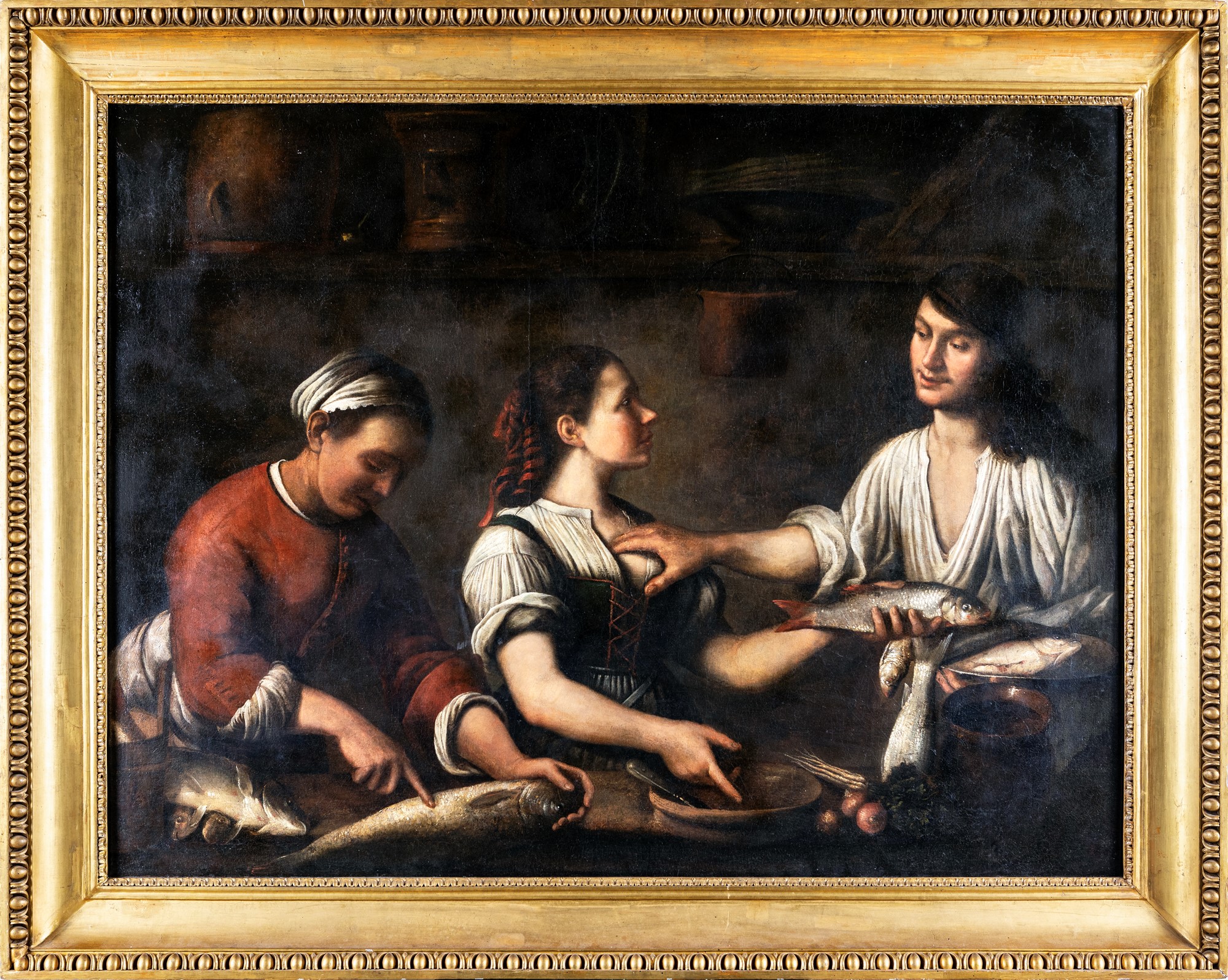 Astolfo Petrazzi Siena 1583-Siena 1665 Venditrice di pesci Autentica del Professor Eduard A. Safarik olio su tela cm 130x172 - in cornice cm 158x198