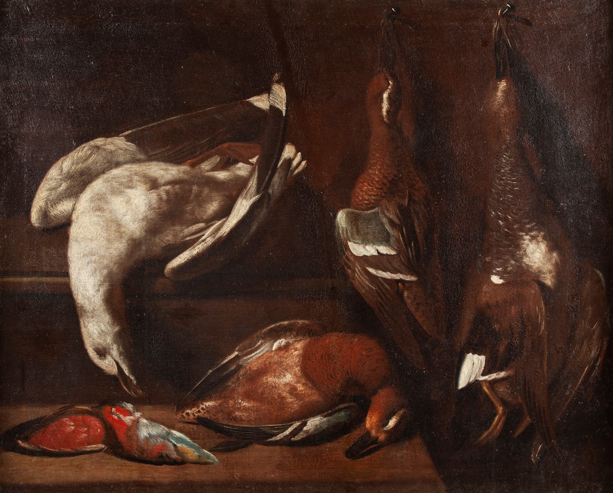 Arcangelo Resani (attribuito a) Roma 1670-Ravenna 1740 Natura morta con cacciagione Dopo una prima formazione romana nella bottega di Giovanni Battista Boncori, Arcangelo Resani si trasferì giovane a Bologna con la famiglia. Nella città felsinea il pittore riscosse un’immediata fortuna per la sua capacità, testimoniata dalla stima espressa nei suoi confronti da Lorenzo Pasinelli e Carlo Cignani, nel dipingere gli animali.