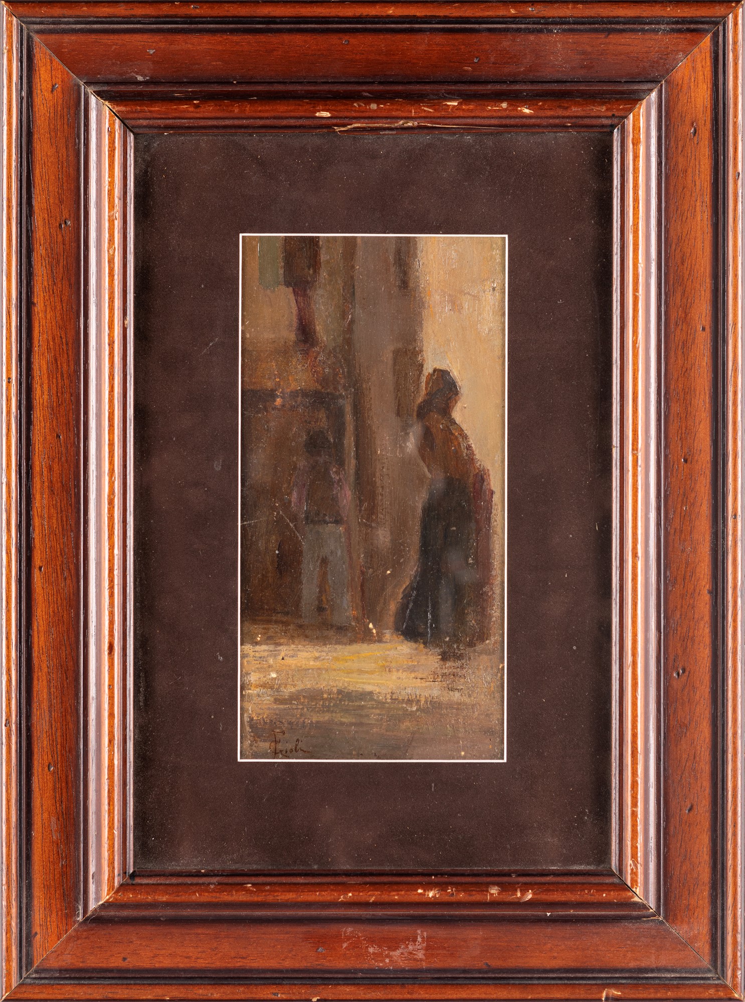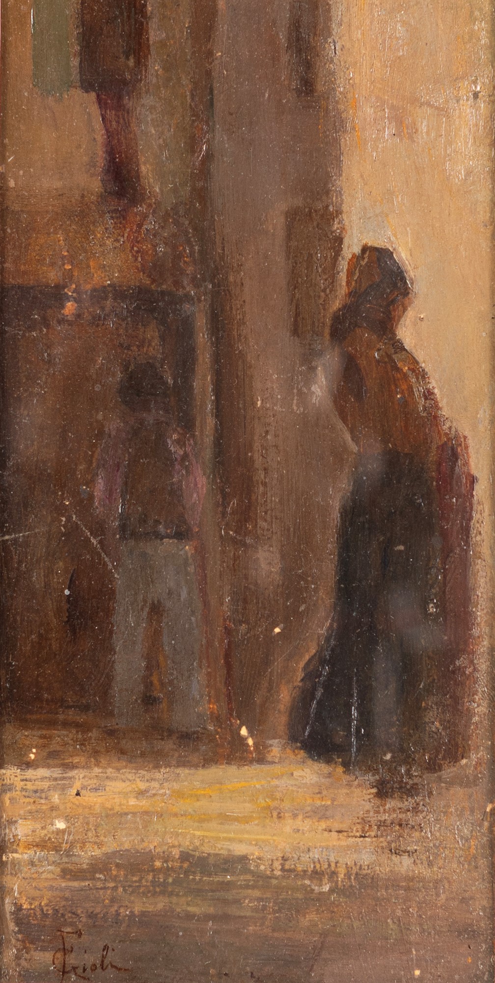 Francesco Gioli 1846-1922 La strada Firmato in basso a sinistra olio su tavola cm 25x13, con cornice cm 45x34